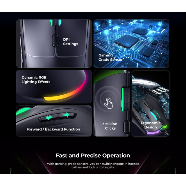 - দ্রুত DPI সুইচিং, সঠিক এবং ল্যাগ মুক্ত কন্ট্রোল